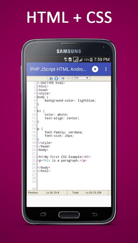 PHP JavaScript HTML and CSS IDE For your Android Device