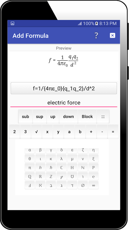 آپ اس ایپ سے طبیعیات کے فارمولوں کی ایک بڑی فہرست پڑھ سکتے ہیں۔ اس کے علاوہ آپ اپنا فارمولہ لکھ کر اسے ایپ میں محفوظ کر سکتے ہیں۔