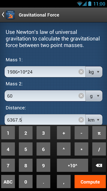 The Wolfram Physics I Course Assistant draws on the computational power of Wolfram|Alpha's supercomputers over a 2G, 3G, 4G, or Wi-Fi connection.