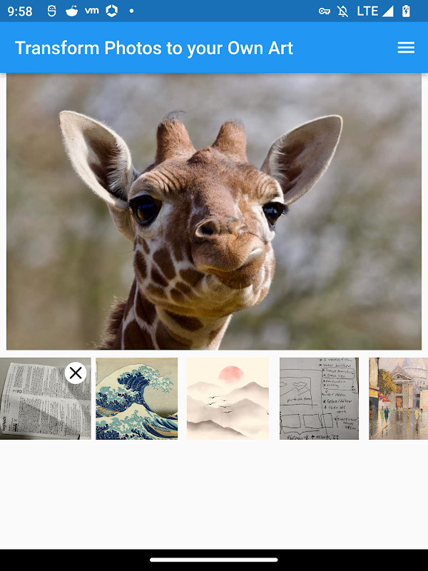 آپ کسی بھی تصویر کو اپنے AI "فلٹر" کے طور پر اپ لوڈ کر سکتے ہیں یا ہماری ایپ پر فراہم کردہ AI "فلٹرز" سے منتخب کر سکتے ہیں۔ ایک نئی تصویر لیں یا اپنے فون سے فوٹو منتخب کریں۔ اپنی تصاویر کو ذاتی نوعیت کے AI آرٹ میں تبدیل کرنے کے لیے اپنا AI فلٹر لگائیں - یہ منفرد طور پر آپ کا اپنا ہے۔ تیز، آسان، مزہ اور مفت ہے!