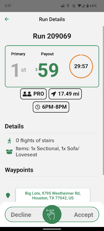 PICKUP Pro کے طور پر، آپ کو اپنا کاروبار بنانے کی آزادی ہے۔ اپنے علاقے کے صارفین کو بڑے ریٹیلرز جیسے بڑے خوردہ فروشوں سے آئٹمز ڈیلیور کرنے کے لیے اپنا خود کا پک اپ ٹرک، وین، باکس ٹرک، یا پٹھوں کا استعمال کریں۔ آپ دوستوں اور کنبہ والوں کی مدد کے لیے پہلے ہی اپنی گاڑی استعمال کر رہے ہیں۔ اب آپ اسے تیزی سے پیسے اپنی جیب میں ڈالنے کے لیے استعمال کر سکتے ہیں!
