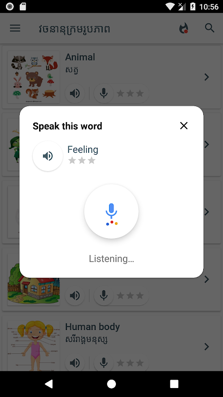 Sound Khmer English French Picture Dictionary easily to learn each words.