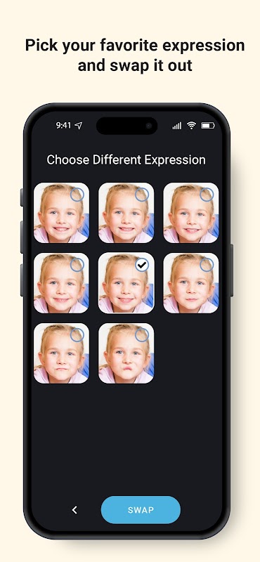 ایپ آپ کے کیپچر سے حقیقی لمحات کا استعمال کرتی ہے۔ چہرے کے تاثرات کبھی بھی AI سے پیدا نہیں ہوتے ہیں۔ یہ آپ کی تصویر میں موجود لوگوں کے چہرے کے حقیقی تاثرات ہیں جن میں سے آپ انتخاب کر سکتے ہیں۔
