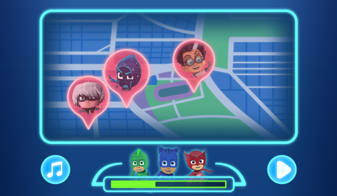 Help your favorite PJ heroes, Defeat villains with Catboy, Owlette and Gekko! Choose your favourite hero and start your adventure through the PJ Super Mask Starlight Sprint. collect coins with which you can unlock new heroes and abilities! Catch the villains and collect the items they have been stealing, BUT make sure to look out for any traps they might have set..!
