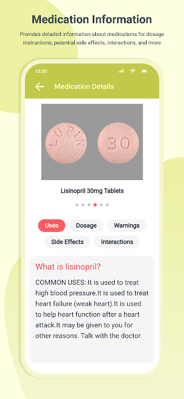 گولی کی شناخت: شکل، رنگ، اور امپرنٹ کوڈز جیسی بصری خصوصیات کی بنیاد پر گولیوں کو اسکین کرنے اور شناخت کرنے کے لیے آلہ کے کیمرے کا استعمال کرتا ہے۔ صارف گولی کی تصویر لے سکتے ہیں، اور ایپ اسے ایک وسیع ڈیٹا بیس کے ساتھ ملانے کی کوشش کرے گی۔