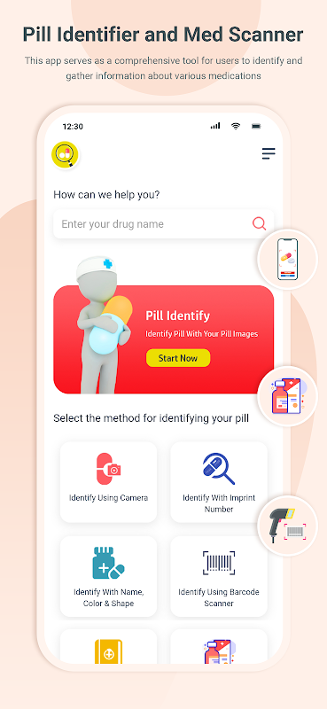 ایک Pill Identifier & Med Scanner ایپ صارفین کو مختلف ادویات کے بارے میں جلدی اور درست طریقے سے شناخت کرنے اور ان کے بارے میں معلومات جمع کرنے میں مدد کرنے کے لیے بنائی گئی ہے۔ ایسی ایپ کی بنیادی خصوصیات میں شامل ہو سکتے ہیں: