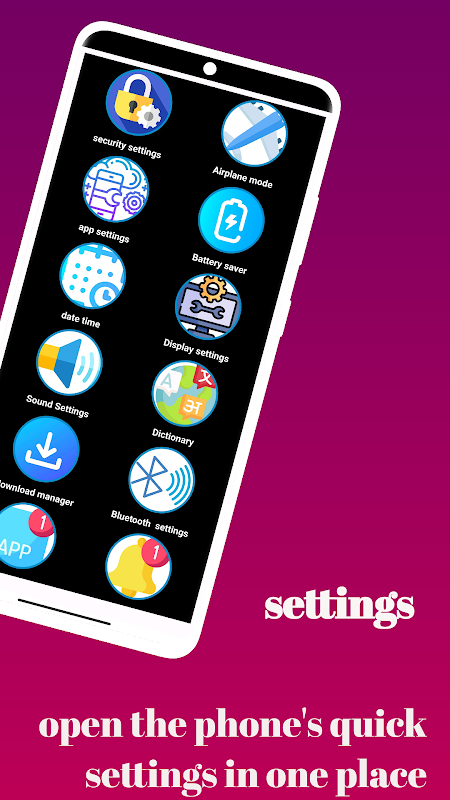 • Open important phone settings from one place .