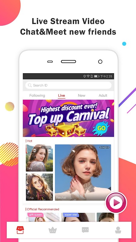 You can broadcast your life,gain many fans,receive gifts,earn money and be an idol easily.