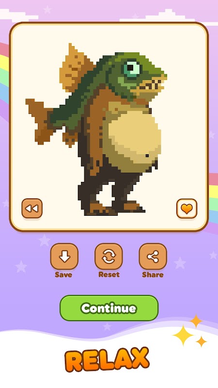 صرف ایک نل کے ساتھ، اپنی ترجیح کے مطابق پکسل آرٹ کو رنگین کریں۔ بہتر نظارے کے لیے زوم ان اور آؤٹ کریں۔ گیم کو آپ کی دلچسپیوں کی بنیاد پر اسی طرح کا فن تجویز کرنے دیں۔