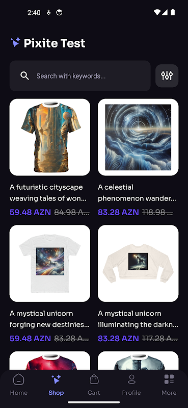 Pixite میں خوش آمدید، اپنی مرضی کے مطابق ملبوسات کے ڈیزائن کے لیے حتمی ایپ جو تخلیقی صلاحیتوں کو بالکل آپ کی انگلی پر رکھتی ہے۔ چاہے آپ منفرد ٹی شرٹس، ہوڈیز، یا کوئی اور لباس ڈیزائن کرنے کے خواہاں ہوں، Pixite اسے آسان اور پرلطف بناتا ہے۔ Pixite کے ساتھ، اپنے اندرونی ڈیزائنر کو اتاریں اور اپنے ملبوسات کے خیالات کو زندہ کریں!