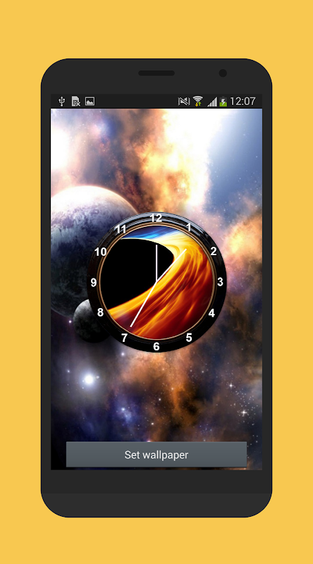 Planets clock live wallpaper shows a high quality analog clock.
