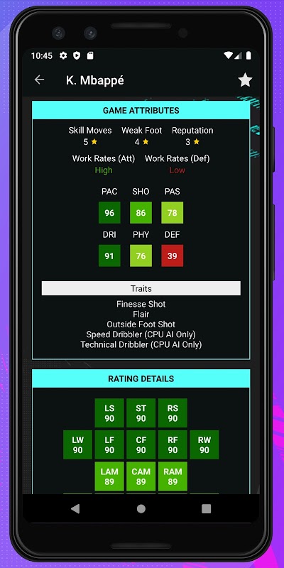 ان کی مجموعی درجہ بندی ، ممکنہ ، درجہ بندی ، عمر ، اصلی چہرہ ، پاؤں ، مارکیٹ کی قیمتوں ، کھیل کی خصوصیات ، مقامات ، قومیت ، لیگ ، کلب ، معاہدہ اور مہارت سے آسانی سے کھلاڑیوں کو تلاش کریں۔ کھلاڑیوں کا تفصیل سے تجزیہ کریں۔ پلیئر پوٹینشل 21 استعمال میں انتہائی آسان ہے۔ منتقلی کے سیزن کے دوران یہ ساتھی ایپ آپ کی بہترین رہنما ثابت ہوگی۔