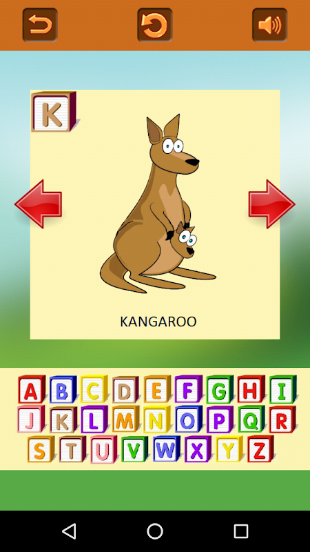 In this game a child can learn about alphabets which are from A to Z. Like if A signifies Apple than it contains image of apple below the alphabet A. Because of this child will be able to learn and understand well. In next section a child can analyze what he/she has learnt. In this few alphabets will appears on screen and child will be asked to detect a particular alphabet. For this there is inbuilt sound system that means sound will be automatically generated and will ask a child to identify particular alphabet and if child detects the alphabets correctly then he/she is praised .For this a sound comes automatically which says "Amazing". If child is not able to detect the alphabet correctly then he/she is asked to "try again". This sound comes in every section where a child analyzed what he/she has learnt. There is a section that teaches numbers from 1 to 20 and in another section few numbers will appear and child will have to identify the number . Next section is for colors where a child will get information about different colors and after that they can test there knowledge by moving on to next section where they will be given a few colors and child will have to identify the asked color. A child can also get knowledge about various shapes like circle, triangle etc. With each shape a small description is given which will help children in better understanding and then they can analyze or identify the required shape from a group of shapes. One section is based on body parts like elbow, head etc. A child can easily learn about various parts through the images and also the description given below with each body parts. This way children will get more knowledge about body parts. Next section is for animals where children will get to know about animals like camel, lion etc and also about their features. After this they can analyze themselves by identifying the required animal from group of animals. There are also sections for fruits, vehicles and calendar . Description is also given with each of them. Through this Children can get to know about fruits like Apple, Banana etc about vehicles like bicycle, bus etc and about months in calendar from January to December. Description given with each of them will help in making them understand there decisions in a better way.