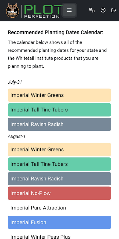 وائٹ ٹیل انسٹی ٹیوٹ کی طرف سے اپنی نوعیت کا پہلا فوڈ پلاٹ مینجمنٹ سسٹم۔ وائٹ ٹیل انسٹی ٹیوٹ کے مٹی کی جانچ کے ساتھ براہ راست انضمام آپ کو مٹی کے نمونے کے ٹیسٹ کے نتائج کو تیزی سے بھیجنے اور وصول کرنے کی اجازت دیتا ہے! لچکدار، تفصیلی جریدہ جو فوڈ پلاٹرز کو اپنے تمام فوڈ پلاٹوں کے بارے میں تاریخی اور موجودہ معلومات رکھنے کی اجازت دیتا ہے۔ نقشہ سازی پلاٹ پر ایک کلک کے ذریعے آپ کی ٹریک کردہ معلومات کو دستیاب کراتی ہے۔ کھاد، چونے اور سپرے کیلکولیٹر مصنوعات کی مقدار کا حساب لگانا آسان بناتے ہیں۔ آف سیزن پلاننگ وائٹ ٹیل انسٹی ٹیوٹ کے تجویز کردہ نرخوں کی بنیاد پر درکار بیج کے حساب کتاب کی اجازت دیتی ہے۔