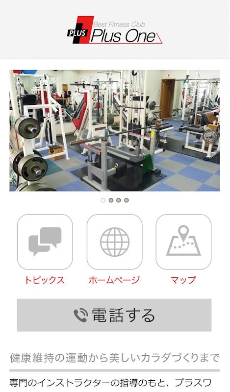 堺中区八田のトレーニングジムPlus One(プラスワン)の公式アプリです!