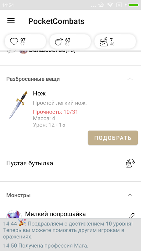 Pocket Combats RPG - ملٹی پلیئر آن لائن ٹیکسٹ RPG