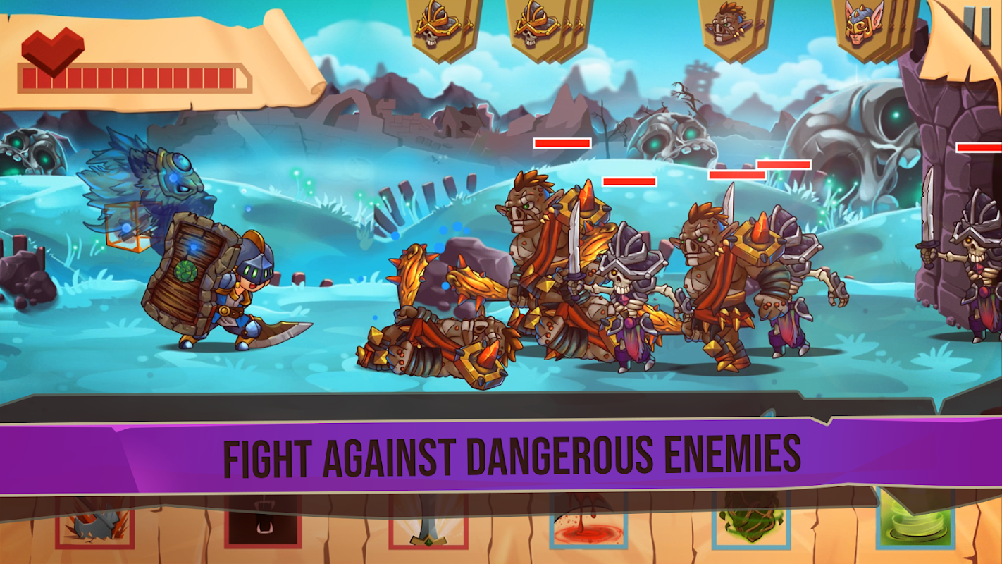 The world is full of legendary gear for you to collect; from pirate cutlasses to brutish axes, equip your hero and define your playstyle from epic pieces of gear, and a huge variety of spells! Stop time, teleport, heal everybody or just drop a massive magic axe on your foes; destroy your foes, your way!