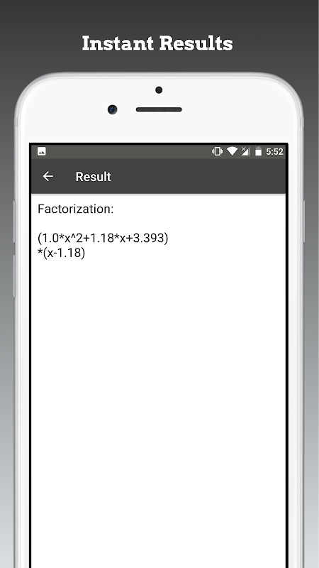یہ ایپ ایک مفت ریاضی کا کیلکولیٹر ہے جو لکیری اور چکودک عوامل میں کثیر الجہتی عنصر کا حساب لگانے کے قابل ہے۔ حقیقی گتانک کے ساتھ کسی بھی کثیر الجماعی کے ناقابل تلافی کثیرالقاعی میں ہمیشہ عنصر ہوتا ہے۔