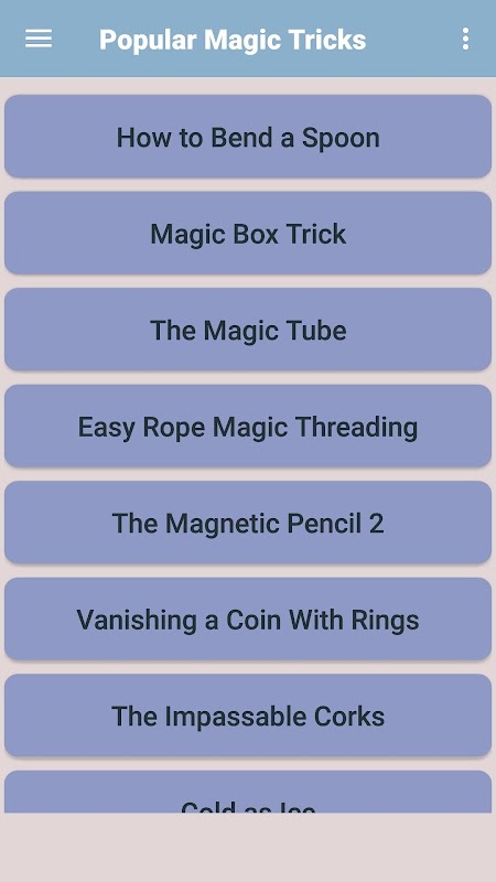 Popular magic tricks app features tips and ideas of the most famous magic tricks that you have seen or heard being shared on social media sites and other sites. These are magic tricks that are easy to learn and perform. The tricks are mostly referred to as effects and each magician has dozens of them that he can perform.