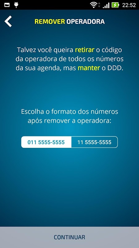 - Remove o código da Operadora, deixando no formato (11) 5555-5555 ou (011) 5555-5555