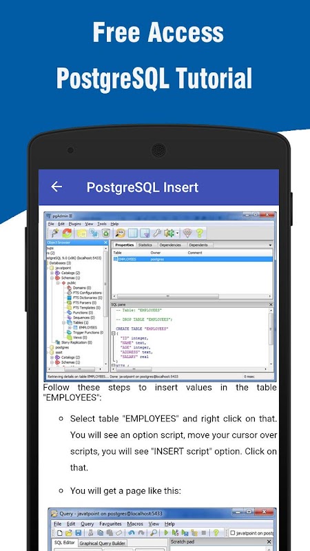 This app has been prepared for the beginners to help them understand the basic to advanced concepts related to PostgreSQL Database.
