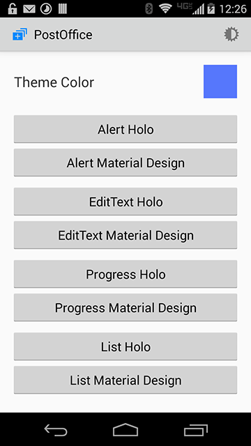 This is the example application of my PostOffice library that lets you easily create Holo or Material Design dialogs in either Light or Dark modes and provides easy customizations and configurations.