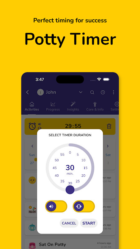 ✅ یاد دہانی حاصل کرنے اور اپنے بچے کو ٹریک پر رکھنے کے لیے ایک پاٹی ٹریننگ ٹائمر ترتیب دیں۔