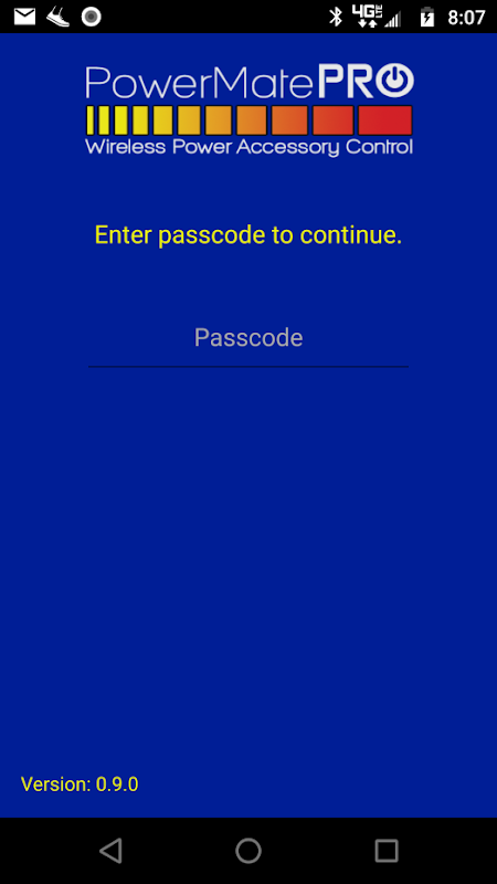 The PowerMatePRO app allows the user to operate attached power accessories remotely using the Bluetooth radio system on your Android based phone or tablet. The app can control up to 7 PowerMatePRO modules in a single RV. The user can name each power accessory for easy identification within the app. Switching between power accessories is as simple as selecting the named module from the list of available devices.