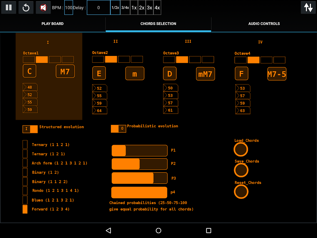 This application is a rhodes synthetizer automata. It features a chord dictionary and a simple mechanism to let you build chord progressions. It also features a playing board and very fun 'dub-delay'.