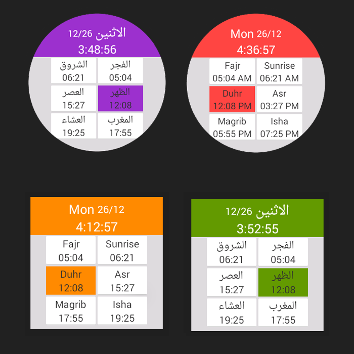 Prayer Times for android wear is an app that will show you the muslim daily pray schedule based on user location on your watch.