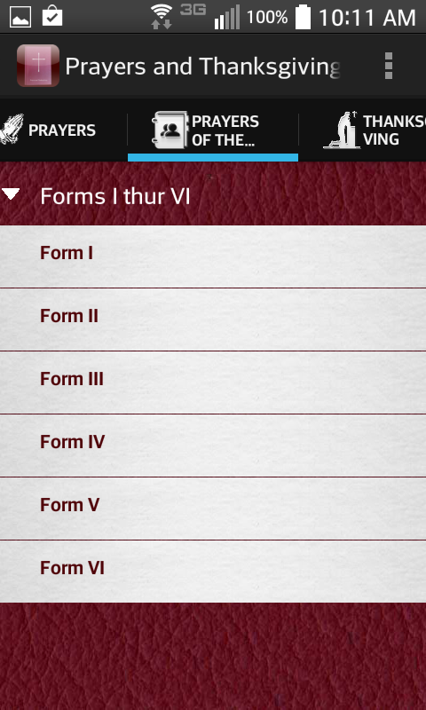 This App is based on the Prayers and Thanksgivings chapter in the 1979 Book of Common Prayer (Episcopal Church) beginning on page 809. The purpose of the App is to provide easy access to more than 120 Prayers and Thankgivings available using a simple to use interface. Also included is the Prayers of the People (Forms I through VI) normally found on page 383 of the 1979 Book of Common Prayer (Episcopal Church). I hope you and your family find this App spiritually enriching for your souls and enjoy it as much as I do with my family.