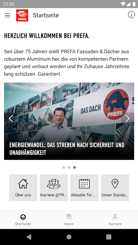 اس ایپ کے ذریعے، ہم اپنے صارفین، شراکت داروں، دوستوں اور ملازمین کو PREFA دنیا کی دلچسپ خبروں اور جدت، صنعت، کیریئر اور پائیداری کے موضوعات پر تازہ ترین رکھنا چاہیں گے۔ آپ یہاں تفصیلات حاصل کر سکتے ہیں:
