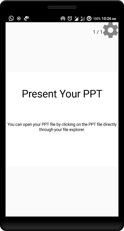 Present Your PPT app lets you open your PPT files in your smartphone on the go. It supports fullscreen feature which lets users to enjoy their PPT files in full width and height. Open your PPT files directly from file explorer by clicking on it and selecting Present Your PPT app. There are various other useful features like zoom in/out and navigate through other slides through gesture.