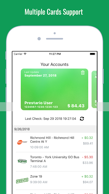 Check your multiple PRESTO cards balance and history from your phone using this unofficial PRESTO card app.