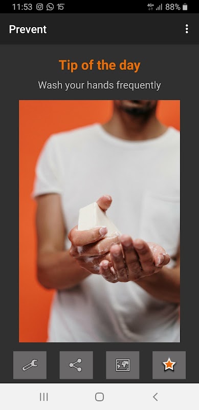 The Prevent App presents daily educational tips for the prevention of contaminations, as: maintain social distance, change the mask frequently, etc.