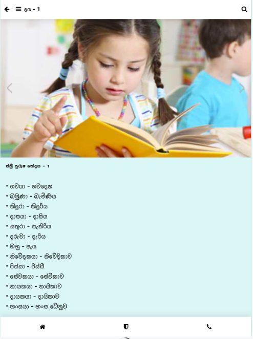 This app contains Sinhala educational materials such as idioms, essays, English words, and other lessons related to grade 5 scholarship exams. Parents can easily teach by using this app.