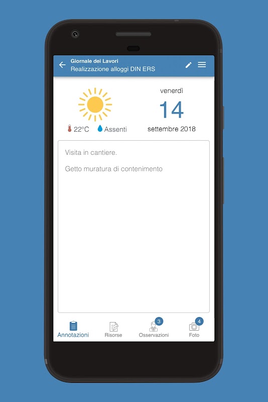 - apportare informazioni utili a ricostruire l'andamento dei lavori attraverso azioni, registrazioni, riserve, ordini di servizio, sopralluoghi, istruzioni operative, documenti allegati, foto, ecc.