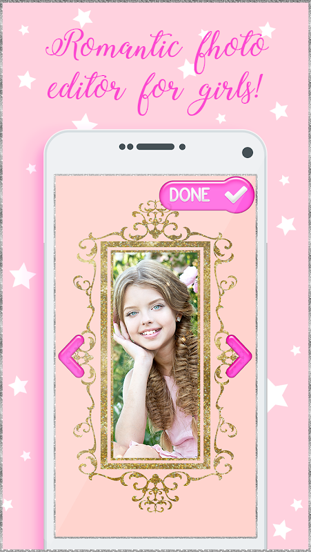 Modify your fashion photo with some lovely 💜Princess Photo Frames💜! Your girl photo will look much better with glisten frames on it. Apply cute photo filters to your images! Frame editing has never been easier thanks to the girl photo app! Look fabulous in every photo embellished with glitter photo frames and effects! Enjoy using the sophisticated girl photo camera every day!