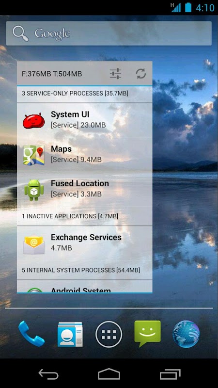 I wanted a simple widget that would show what's currently running on my device, how much free memory I had, and allowed me to quickly manage processes to free up memory.
