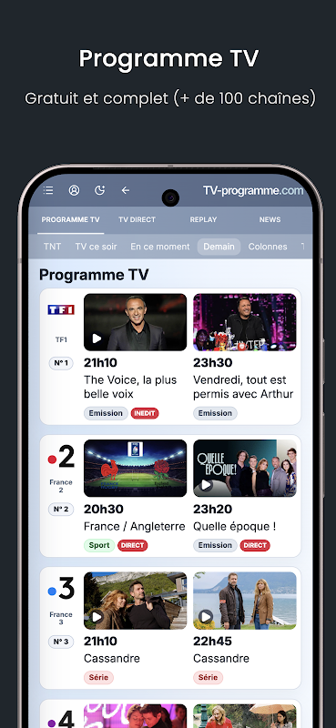 tv-programme.com کے ساتھ، اپنے ٹی وی پروگرام کا انتخاب اور اہتمام کرنا اتنا آسان کبھی نہیں تھا۔