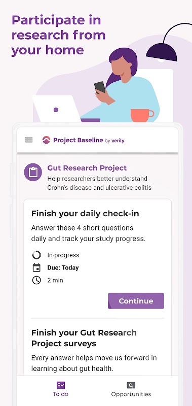 گھر سے طبی تحقیق میں حصہ لیں اور دنیا کو بدلنے میں مدد کریں۔ پروجیکٹ بیس لائن لوگوں کو سائنس کو آگے بڑھانے کے مواقع سے جوڑتا ہے، اس طریقے سے جو آسان، بامعنی اور روزمرہ کی زندگی کے ساتھ مل جاتا ہے۔