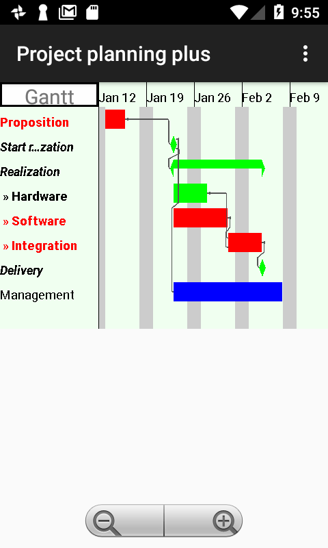 اس میں اشتہارات پیش کیے بغیر "پروجیکٹ پلاننگ" پروگرام کی تمام خصوصیات موجود ہیں۔ پروجیکٹ ڈیٹا فارمیٹ دونوں پروگراموں کے لیے یکساں ہے، اور ایک پروگرام کے ذریعے بنائے گئے پروجیکٹ دوسرے کے ساتھ استعمال کیے جا سکتے ہیں۔