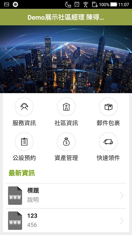 住戶互動類:住戶委員反應、群組通訊、即時通知...等。