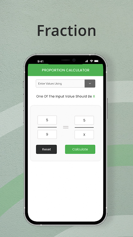 یہ ایپلیکیشن دو تناسب کے تناسب سے "x" یا "نامعلوم" قدر تلاش کرنے کے لیے بنائی گئی ہے۔ یہ لیبل والے اقدامات فراہم کرتے ہوئے ایسا کرتا ہے جو صارف کو تناسب کو گہرائی سے سمجھنے میں مدد کرتا ہے۔