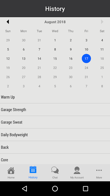 Workout History so you can constantly review what you have done in the past see how much you have improved.