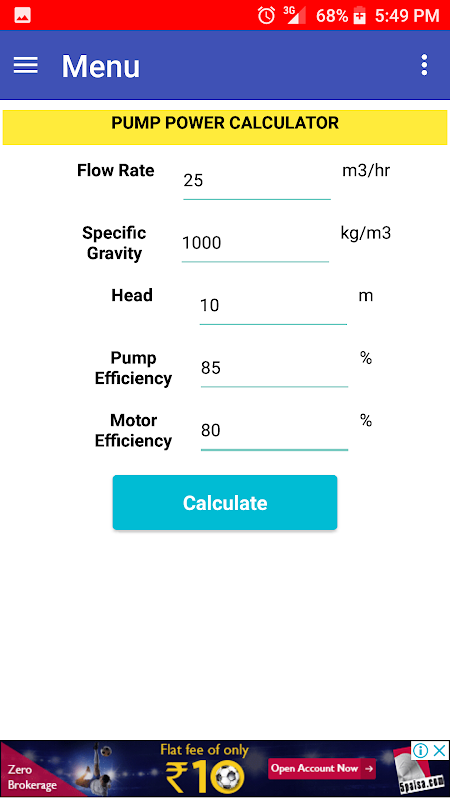 اس ایپ کا حساب کتاب Centrifugal Pump پر مبنی ہے۔