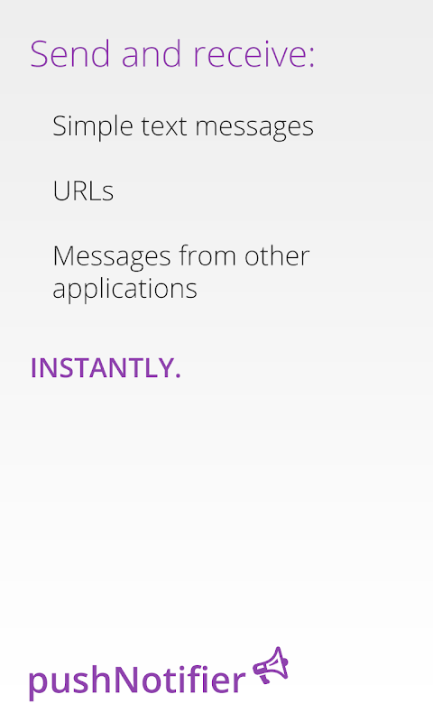 نوٹ: اگر آپ اینڈرائیڈ 5 (لالیپپ) یا اس سے زیادہ چلا رہے ہیں تو ، براہ کرم نیا پش نوٹیفائر ایپ استعمال کریں۔ اس میراثی ایپ کو مزید اپ ڈیٹس موصول نہیں ہوتی ہیں اور یہ پرانے آلات پر استعمال کے لئے ہے۔