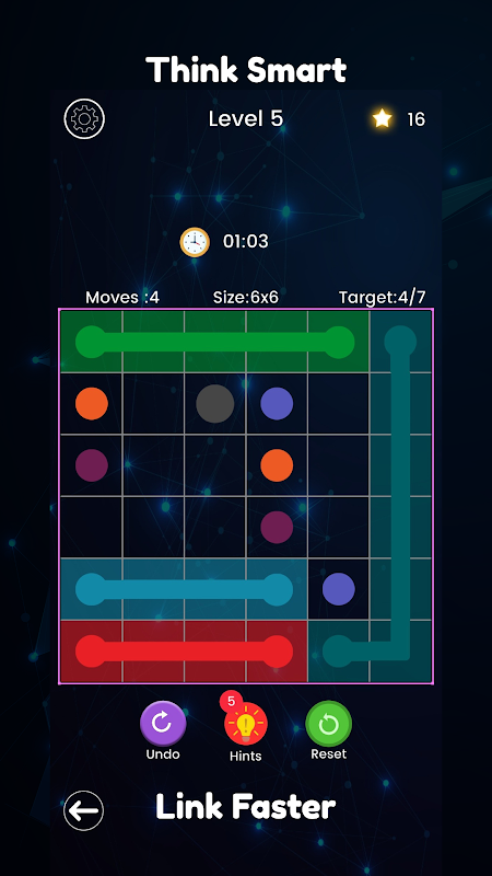 ✔ سادہ کنٹرولز - مماثل نقطوں کو جوڑنے اور گرڈ کو مکمل کرنے کے لیے بس ایک راستہ کھینچیں!