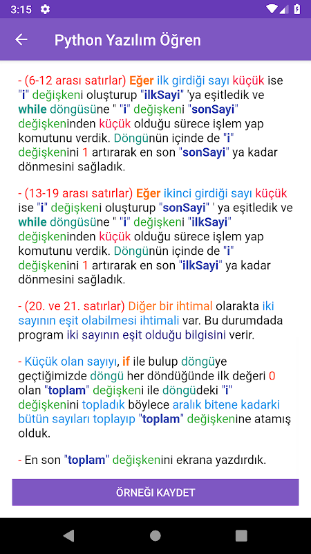 Renkli kodlar ve açıklamalarıyla Python öğrenin, örneklerle kendinizi geliştirin