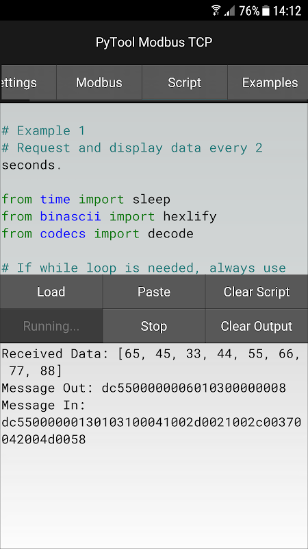 ازگر اسکرپٹ کی خصوصیت والا Modbus TCP ٹول۔